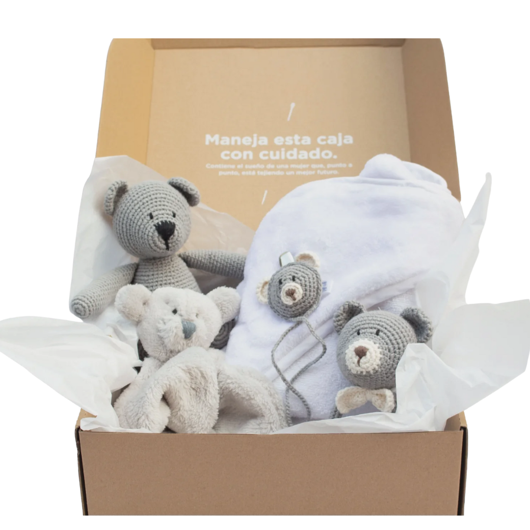 Osito de Peluche (15 cm aprox.) – Disponible en gris o beige, hecho con materiales suaves y amigables para el bebé.