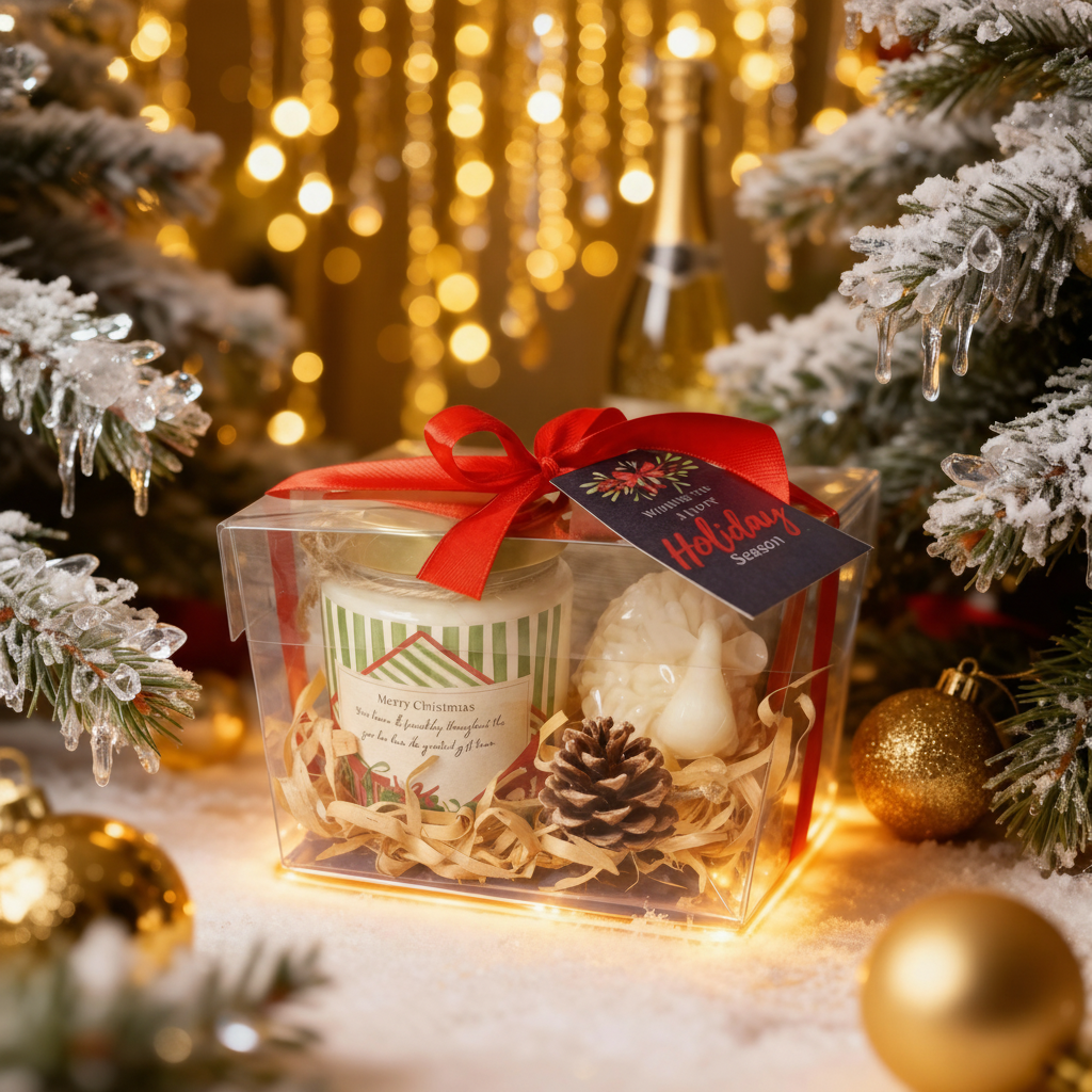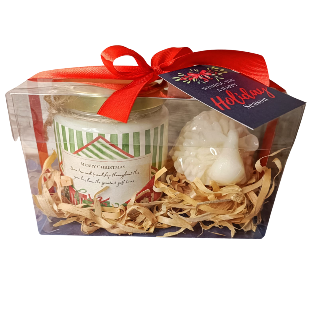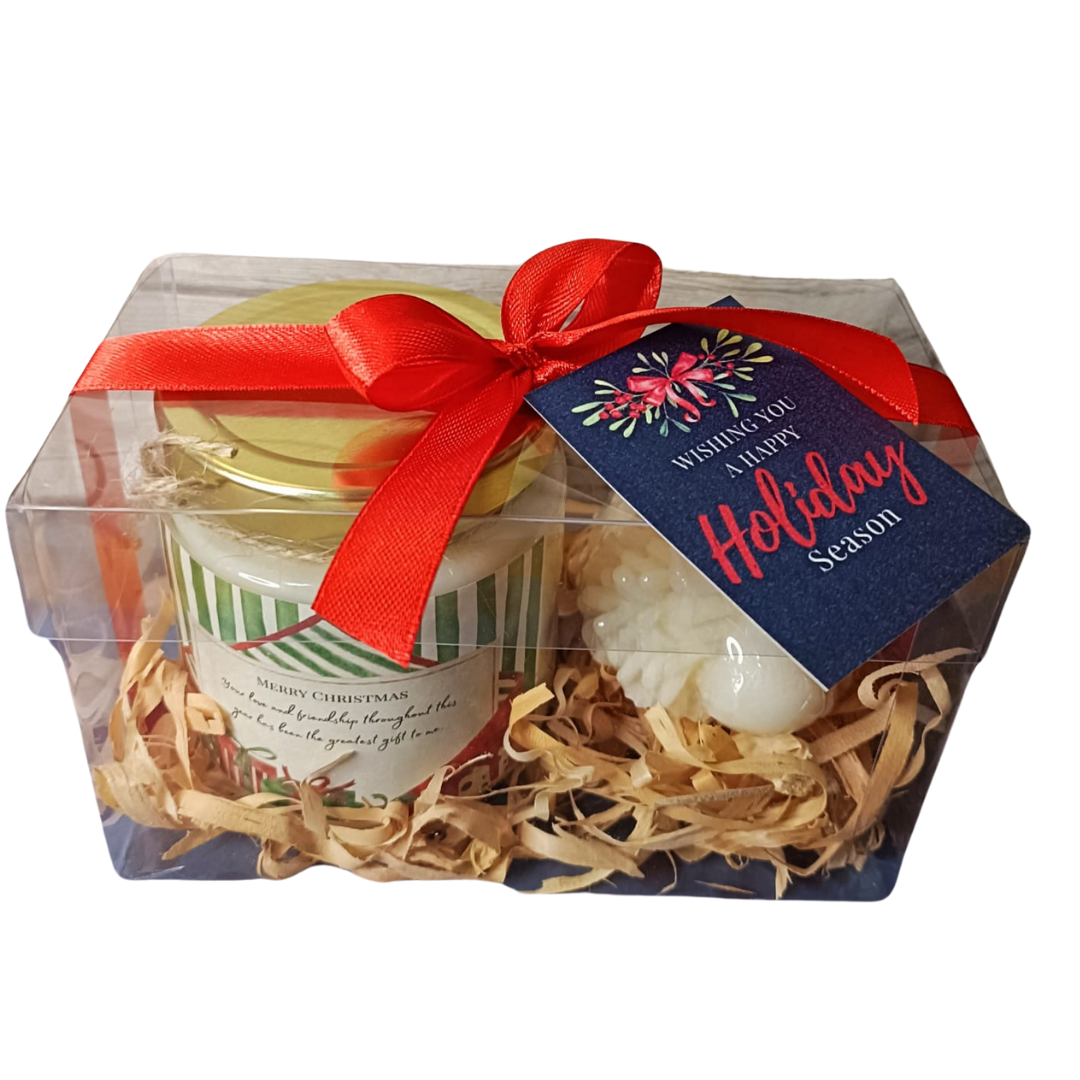 Sumérgete en una experiencia sensorial única con nuestra exclusiva caja de acetato, que incluye una vela aromática de cera de soya de 200 ml y un borrego de jabón artesanal. Disfruta de la suave luminosidad y exquisito aroma que brinda la vela, elaborada con ingredientes naturales que crean un ambiente cálido y acogedor. Además, el borrego de jabón, con su delicada fragancia y propiedades hidratantes, hará que tu piel se sienta suave y revitalizada. Ideal como regalo corporativo o detalle especial para consentirte a ti mismo. ¡Hazte con esta elegante y sofisticada caja y eleva tus sentidos